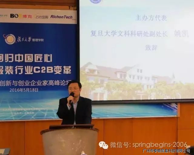 5月18日下午13:00,万众期待的“引领服装行业C2B变革,创新与创业企业家高峰论坛”在复旦大学管理学院如期召开并于下午17:30完美落幕,本次论坛由复旦大学管理学院主办、广州LEWIN乐玩信息科技有限公司协助举办,会场内座无虚席,200余人到场参会。论坛邀请了多位资深学者、成功企业家等重磅嘉宾纯干货主题演讲,受到广泛好评,会议进行中掌声持续响起。